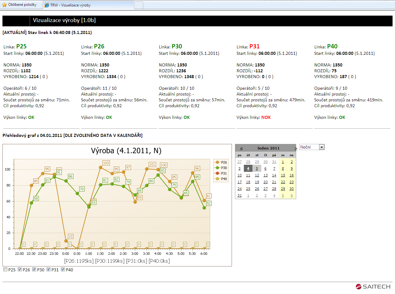 Systém sledování a vizualizace výroby je striktně modulární. V konkrétní aplikaci mohou být použity dle výběru jen moduly s nejvyšším přínosem pro daný druh výroby, nebo je možné stávající řešení doplnit či upravit podle konkrétních potřeb provozu. Online vizualizace důležitých parametrů výkonu přímo ve výrobě pak motivuje zaměstnance k dodržení, či ještě lépe k překročení normovaných výkonů. Komplexní sběr těchto dat a sledování jejich vývoje v čase může být dobrým vodítkem k optimalizaci vnitrofiremních a výrobních procesů. Chcete se dozvědět víc? Seznamte se s praktickými přínosy sledování a vizualizace výroby.